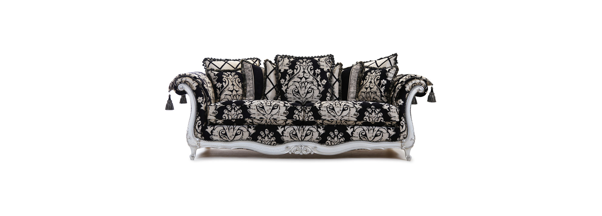 The elegant Venice is a perfect example of craftmentship, combining fine upholstery and intricate carving skills handed down over the generations to produce this beautiful piece. Each piece is individually hand cut and then tailored by a single bench trained craftsman and accurately lock stitched by our quality-trained seamstresses to produce an attractive, luxurious and contoured piece of the finest quality. The model consists of hardwood frame glued, screwed and dowelled; full coil mesh top spring unit throughout. A choice of cushion interiors is available, from sumptuous Dacron, luxurious duck feather or strata reflex foam. Scatter cushions are duck feather as standard with the option of fibre.Alternative frame finishes are available from our Italian show wood gallery.